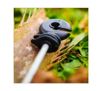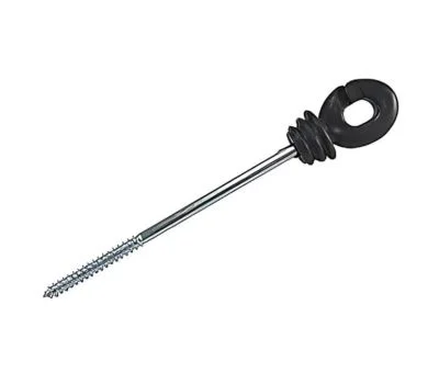 Gancho isolador para poste de madeira com parafuso rosca soberba (haste de 15cm) em polietileno preto usado para rede de energia.